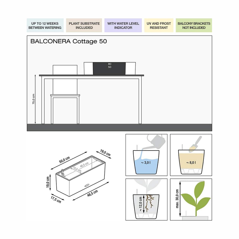 La balconnière Cottage Balconera est doté d’un système d’arrosage automatique (une réserve d’eau disponible pour les plantes)